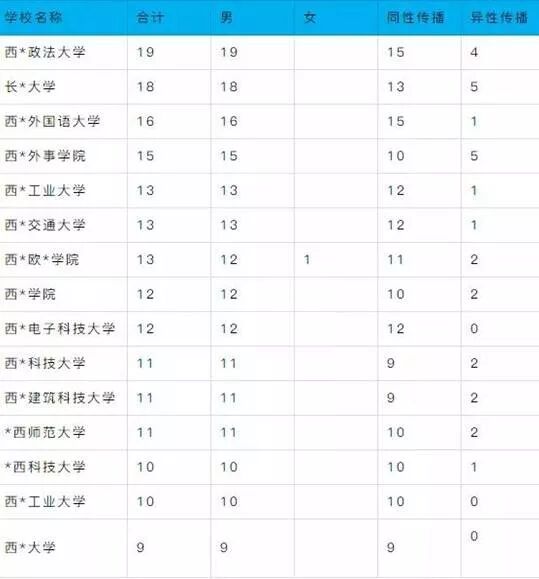 网上曾流传着一份HIV感染者表格,表格中的感染者既有985高校的学生,也有民办大学的学生。