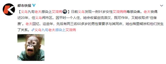 虽然不相信这一切,但91岁的崔老太还是被检查出艾滋病。让很多人没想到的是,她染病的途径是性行为。   崔某丧偶20多年,独居在义乌市区,虽然已是古稀之年,但身子骨还算硬朗。