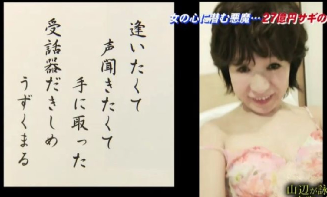 就这样,不是天生大美人的山边节子,靠着精心设计好的手段,辗转于各个优质男人之间,得到了爱情,也得到了面包。   只是让山边节子没想到的是,她的异性吸引力,也会有失效的时候。   山边节子发现,一位从不吝啬给她花钱的有钱社长变心了,他有了新欢。这位新欢,比山边节子年轻,也比山边节子漂亮。   她愤怒,却也不得不承认,自己与对方相比,没有丝毫优势。但山边节子并没有因此气馁,也没有变得自卑,她只是改变了以往追求男人的手段——由外,变成内。   她开始给她看中的男人写诗,一些甜腻腻的诗:   “想见,想听,抱着手中的话筒,蹲坐着。”