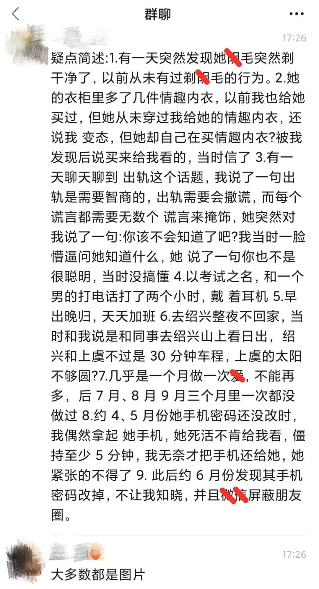 至于如何发现妻子的背叛,丈夫也简述了自己发现的几个疑点: