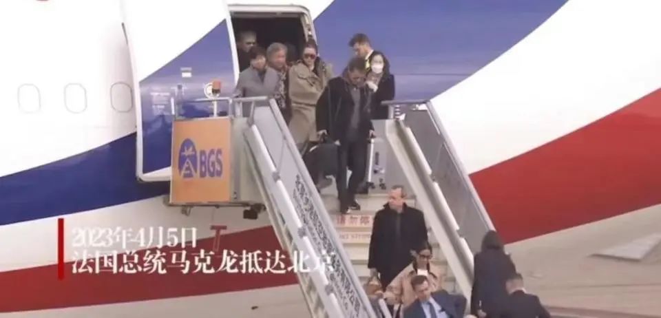 4月5日下午,法国总统马克龙乘坐的专机抵达北京进行为期3天的访问活动。
