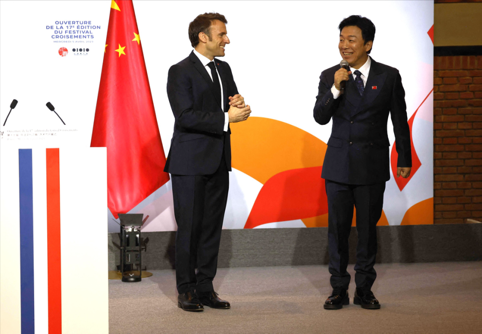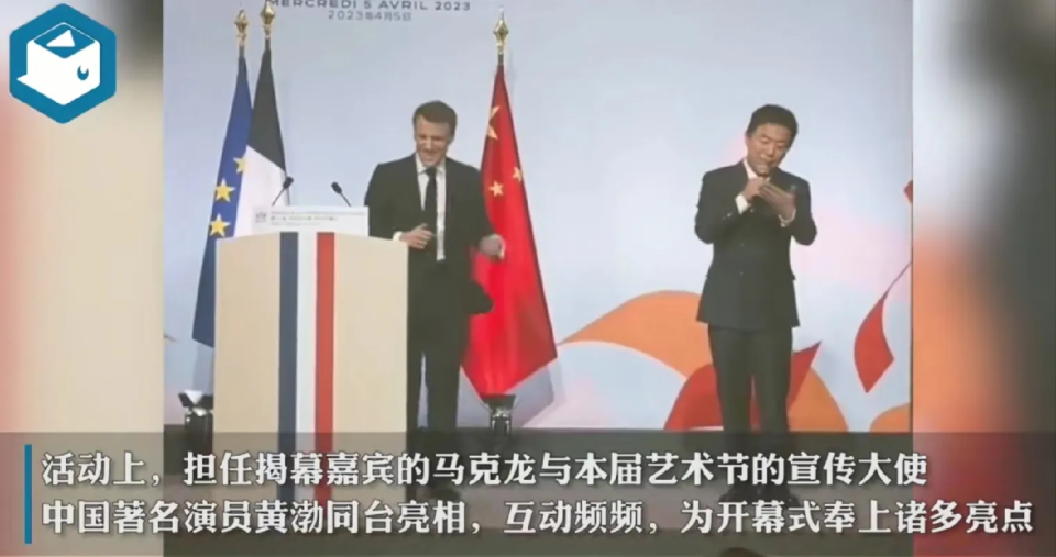 中国演员黄渤,作为本届艺术节的宣传大使,在开幕活动上跟马克龙同台亮相,互动频频,引起很多网友的热议与点赞。