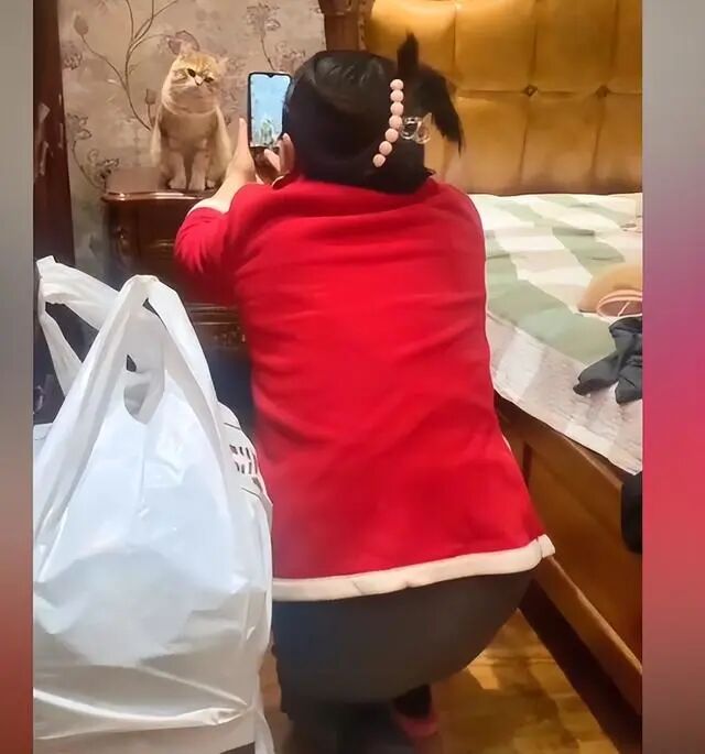 这还是当初反对养猫的爸妈吗? 只见爸爸在客厅里看电视的时候,一向不善言辞的他,居然对着猫咪表演了一段才艺来取悦它,想让猫咪到他身边来。 更离谱的是,当女孩在猫咪睡觉的时候,想去找它玩,居然被爸爸厉声呵斥了,让自己不要打扰猫,整得女孩都无语的,自己买的猫,还没权利了? 而妈妈呢,更夸张,她化身猫咪的狂热粉丝,找着各种角度拍猫咪的视频,好晒到朋友圈去,让大家欣赏家里的猫,问她就说,猫咪太好看了,怎么拍都拍不够。