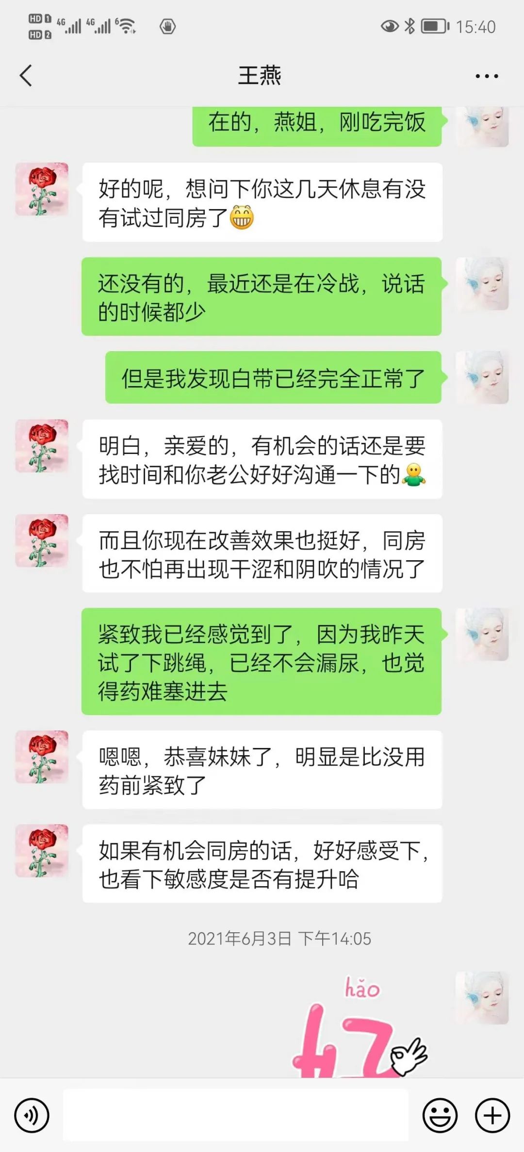 用完两个疗程后,我整个人变得特别清爽,下面也很干净,已经没有什么脏东西排出来。我的皮肤重新有了光泽,气色特别好,别人都说我看起来年轻了好几岁。