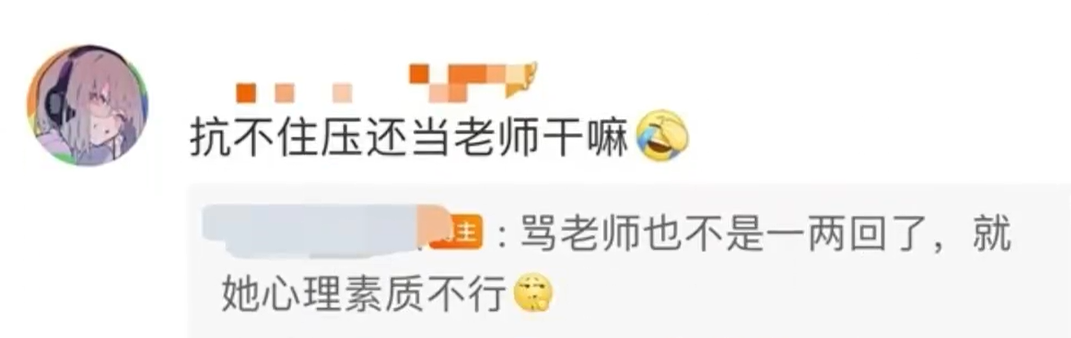 网络暴力何时休? “网课爆破”被称为新型网络暴力,因为它发生的平台与以往有较大不同。 在其他社交平台内,网络暴力也并不少见,许多人刻意集合起来,对他人恶语相向。 但其实他们在现实生活里根本没有交集。 这些不法分子纯粹是为了满足自己的私欲,恶意向他人发泄! 他们对于自己在网上轻飘飘地敲下几个字就能伤害别人感到非常高兴,并且很多时候当“键盘侠”并不需要承担责任。 这也让他们更加肆无忌惮。 有不少网友声称自己遭到网络暴力攻击后会产生自杀或者厌世的想法… 所以,希望各方都要对网络暴力提起重视。 躲在屏幕背后的施暴者一定要受到惩罚,这样才不会让更多的人受到伤害! 网友热评 觅波: 以前看到过爆料,说网上好像是有一波人专门以扰乱课堂和秩序为乐,如果加锁还会有学生暗中告知,故意欺负年纪大的老师以此为乐。不知道会不会是同一种人,希望能够成功找到凶手。网络不是法外之地。 来亿杯草莓莓奶盖: