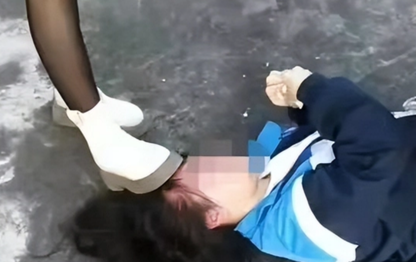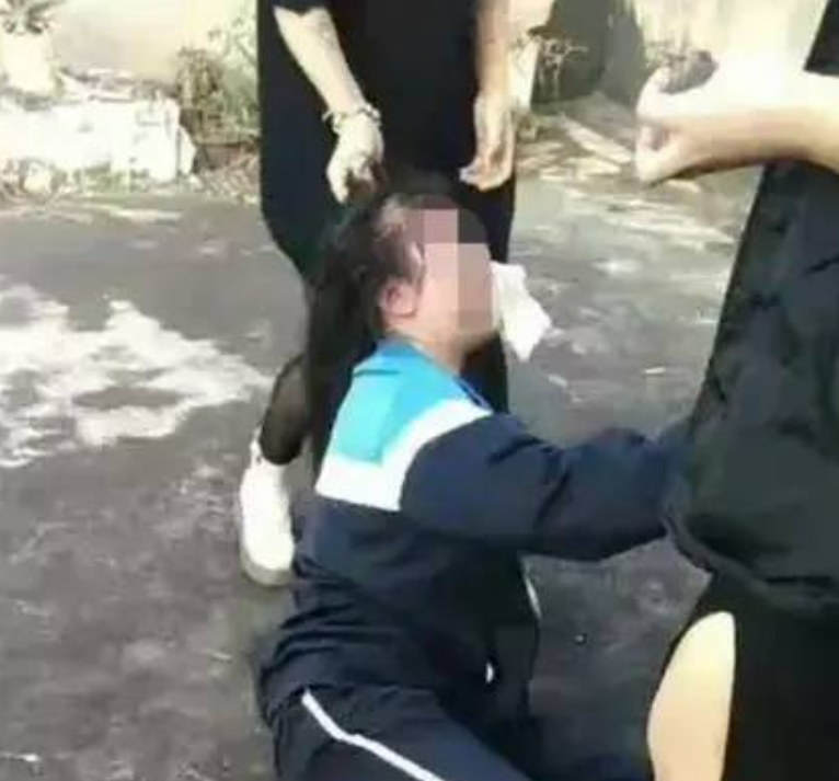 其中一名女生嘴里说着:“你就亲口承认嘛,我不打你。” 说着不打,等到话音刚落,这位女生就直接给了徐某一耳光。 接着就开始了长达十分钟的围殴霸凌。 这三名狠毒的施暴者轮番上阵,对徐某又是揪头发,又是打耳光,甚至用脚去踩徐某的头部! 直到徐某被打得流血了,施暴者才肯罢休。