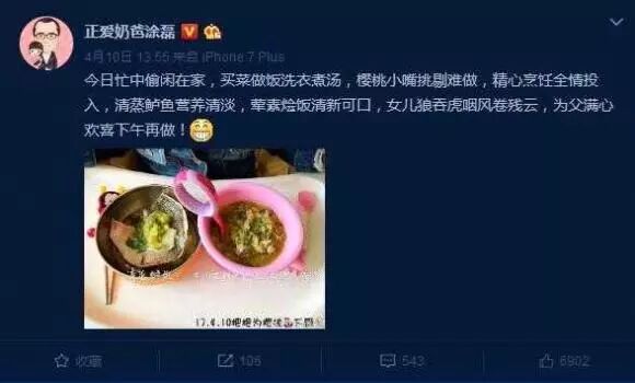前几天他在微博晒出自己为女儿做的午饭,受到众多网友好评,真是个好爸爸,可厨艺真是不敢恭维。