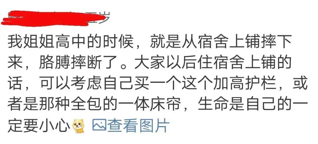 近日,一起发生于江苏省昆山市苏州托普信息职业技术学院内的校园悲剧成为了全网关注焦点: 在该校读书的22岁女生宋嘉怡,在2022年12月3日凌晨睡觉时,从上铺摔下意外身亡。 据正观新闻,1月12日,金女士告诉记者,2022年12月3日,在苏州托普信息职业技术学院上学的女儿宋嘉怡凌晨不慎从宿舍上铺跌落,抢救无效,2天后病逝家中。 女儿住院后,金女士去宿舍用尺子测量了仅有15CM高的床铺护栏,且护栏向外倾斜。她认为,学校床铺有严重安全隐患,并且学校在事件发生后处理不及时,没有突发事件应急预案,造成延误最佳医疗时机,目前金女士已经准备起诉学校。 22岁女生睡觉时从宿舍上铺摔下身亡江苏教育厅:已通知学校整改 苏州姑娘宋嘉怡的生命永远定格在了22岁,夺走她生命的是一次意外摔落。 2022年8月份,宋嘉怡入学苏州托普信息职业技术学院,开学军训期间因身体原因住院治疗,恢复后于11月30日下午返校住进宿舍,她的床铺位于上铺。 12月3日0时54分,舍友给宋母金女士打电话,告知晚上熄灯宋嘉怡睡着后突然从上铺摔下,陷入昏迷,舍友已于0时34分拨打了120急救电话。 由于头部受伤,宋嘉怡被转到苏州第一人民医院新病区。凌晨4时44分,宋嘉怡开始接受手术。手术中宋嘉怡头部打了多枚钢钉,手术后没有了自主呼吸及瞳孔放大,医院宣布脑死亡。 12月5日19时16分,宋嘉怡离开人世。 金女士告诉记者,由于入学时疫情管控,家人没能陪同宋嘉怡看宿舍,不知道宿舍床体存在问题。 事后家属们来到宿舍看到,该床属于上床下桌,床铺离地1.9米,床边铁质护栏高度只有15厘米左右,且向床外倾斜,实际高度不到15厘米。 扣除床铺木板的2厘米厚度和床垫、被褥厚度后,护栏实际上与被褥齐平,上铺人员很容易摔落。其他舍友的床架也和宋嘉怡的一样。