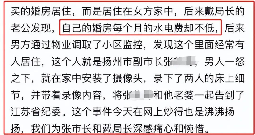 前有会写“花式小作文”的陈区长,现今又出了一个美艳且大胆的戴副局长,不得不说,职场的女性真豁的出去啊! 近日,扬州的戴璐副局长和自己的顶头上司张副市长,一起在老公置办的婚房内“运动”的消息,刷爆了全网,也刷新了大家的三观。
