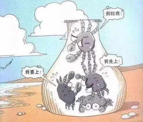 以前在书上有看到过这样的一种效应,叫作螃蟹效应:讲的就是在竹篓中放入一只螃蟹,必须得将盖上盖子才行,不然螃蟹就会很快爬出来的。