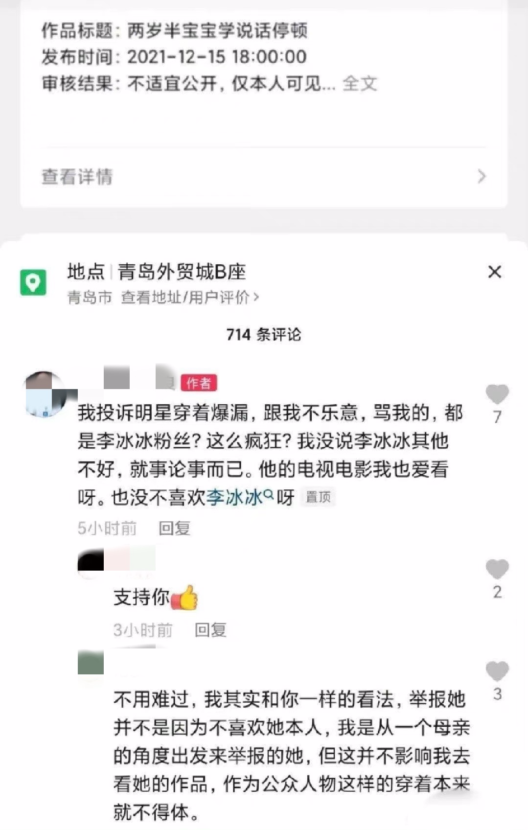 举报者称:“我投诉明星穿着暴露,只是就事论事而已,她的电视电影我也爱看,也没说不喜欢李冰冰啊。”