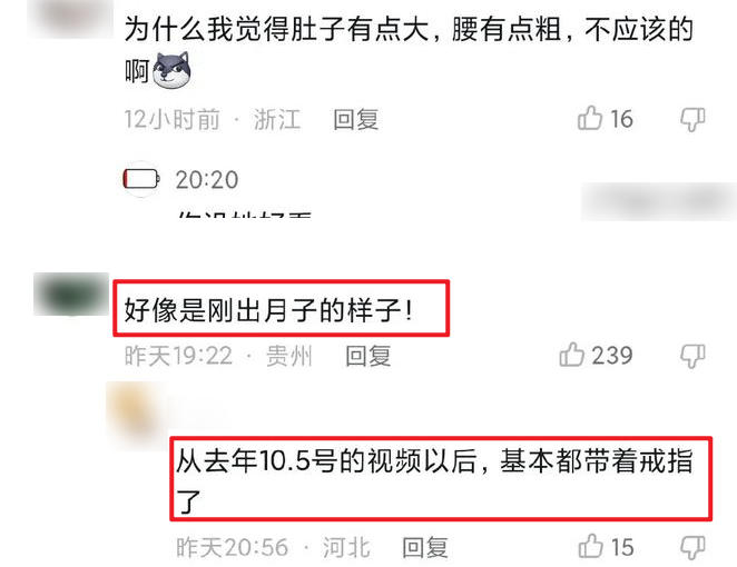 从她晒出的健身视频中,有细心的网友发现她的身形很像是刚出月子的样子,并且从去年10月份开始就戴着戒指。