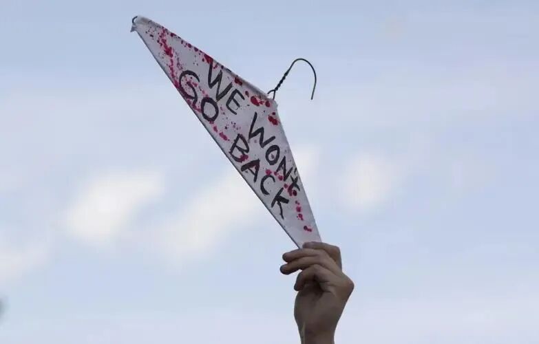 人们举着百年前女性堕胎用的衣架,唤醒了一段惨痛的记忆。