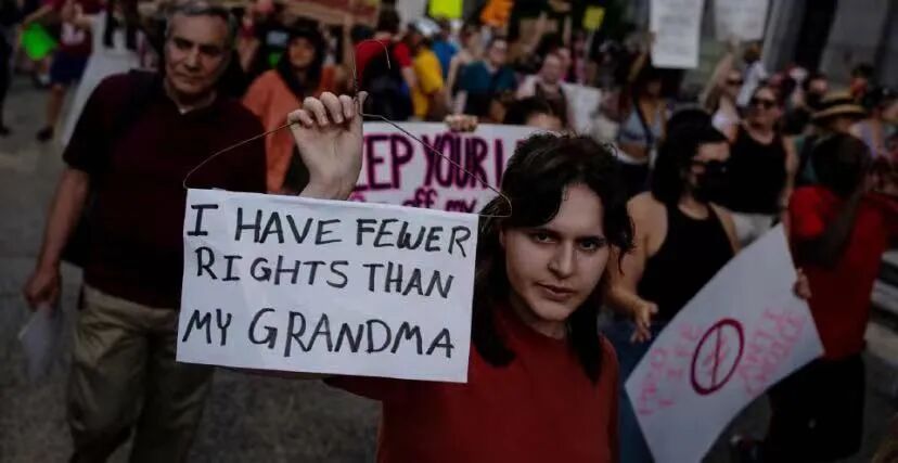 “过去几十年来,我们为女性对自己身体的权利而斗争,而今天的决定,剥夺了我们女性的权利。”