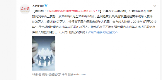 近几年,据有关机构统计,起诉性侵未成年人犯罪案件达到了3.25万人。