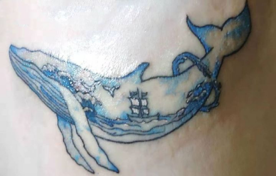 之后,她在自己的腿上纹上了一条小小的蓝鲸。