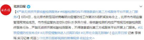 “各核酸检测机构应严格规范核酸检测医疗服务行为,严禁无资质开展核酸检测服务,不得随意委托第三方或服务平台开展上门服务”