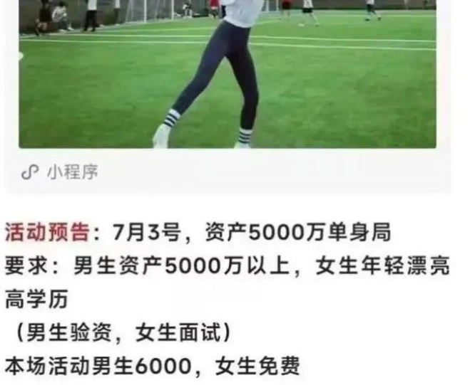 男生要求资产5000万以上才有资格参加,另外还要交6000的入门费用;