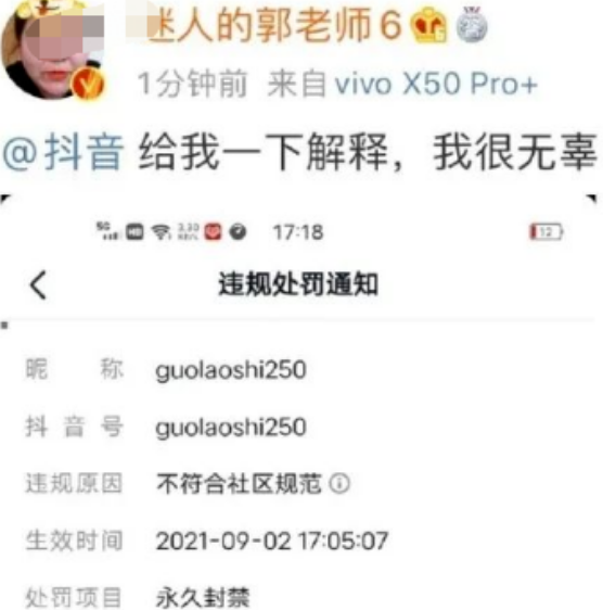 紧接着,郭老师的所有账号永久封禁,一点翻身的机会都没有!