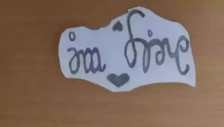 乍一看,妹妹写的是“I m fine,我很好”。