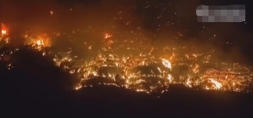到了晚上,山上起风了,干燥炎热的天气,让火场更加迅猛。