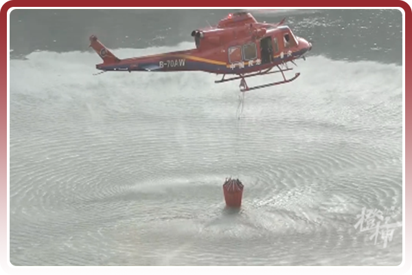 为了救火,好几架直升机从长江取水,不断往返。
