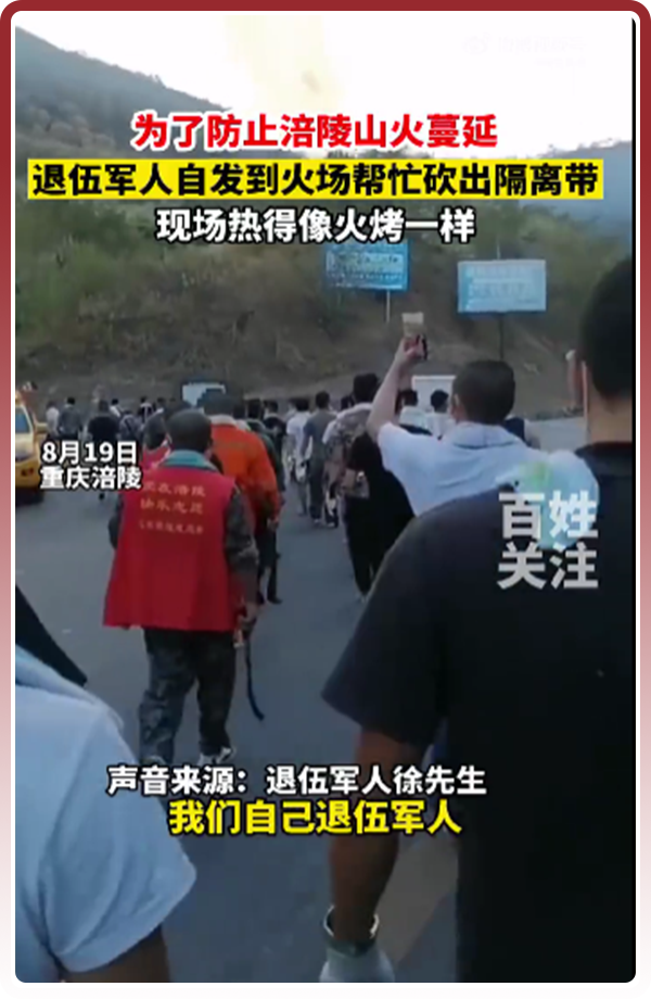 为了防止山火复燃,当地的退伍军人还自发组织,到火灾现场帮忙砍出隔离带。