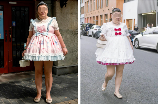 因为得过重病,吃的激素药物导致身体肥胖的上海阿姨,每天都会留着寸头,戴着小皇冠,穿着洛丽塔裙出街。