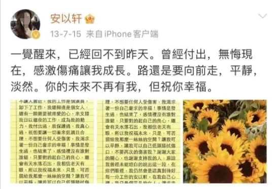 “路还是要向前走,平静,淡然。你的未来不再有我,但祝你幸福。”