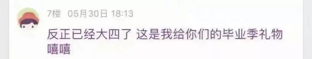 她补充说,大家表面上还是好朋友,这是毕业季她送给室友的“礼物”。