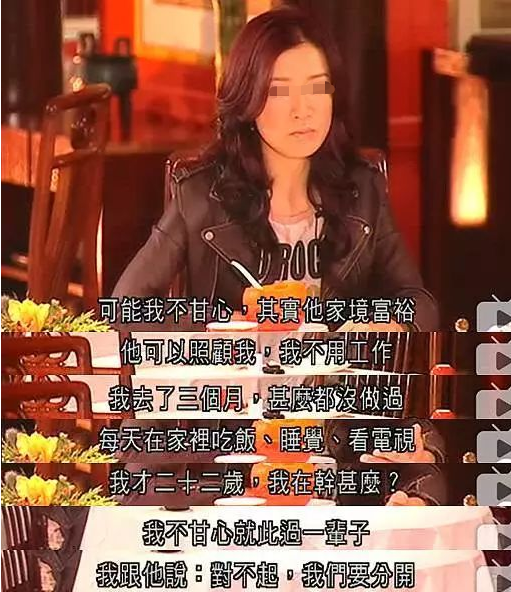 22岁时,佘诗曼交了一个家境优渥的男友,当时的她完全可以嫁入豪门,不用工作,做个少奶奶,但佘诗曼不甘心就此过一辈子,最终和男友分手。