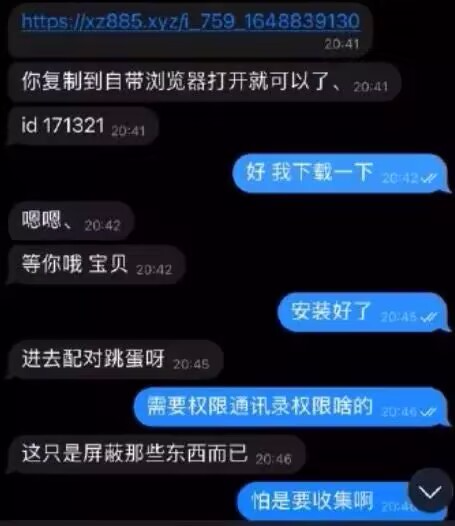 原来,颜女士背后是一个庞大的诈骗团伙,一些人经受不住美色的诱惑下载软件,而后诈骗团伙便通过读取他们的个人信息实施诈骗。