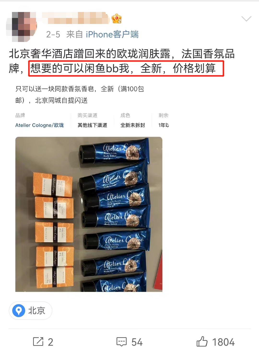 趁着和“大哥们”友好交流的间隙,他还时不时将豪华酒店提供的用品洗劫一空。