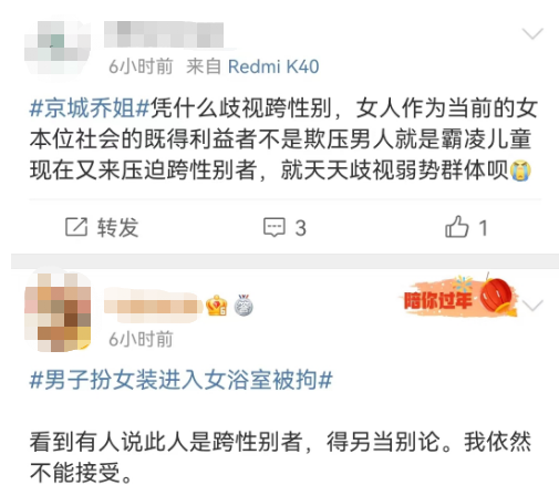 所以,在一些粉丝眼中,身为“跨性别者”的乔姐,和常人是有性别认知差异的。