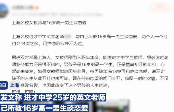 一名25岁的英文女老师,与自己所教的16岁男生,谈恋爱了。