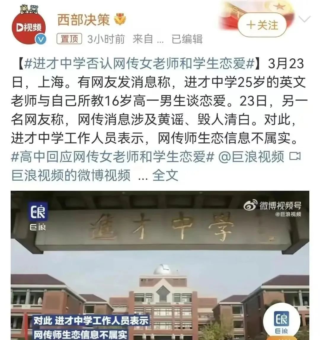 校方进才中学工作人员也是及时站了出来,澄清表示,网传信息不属实。